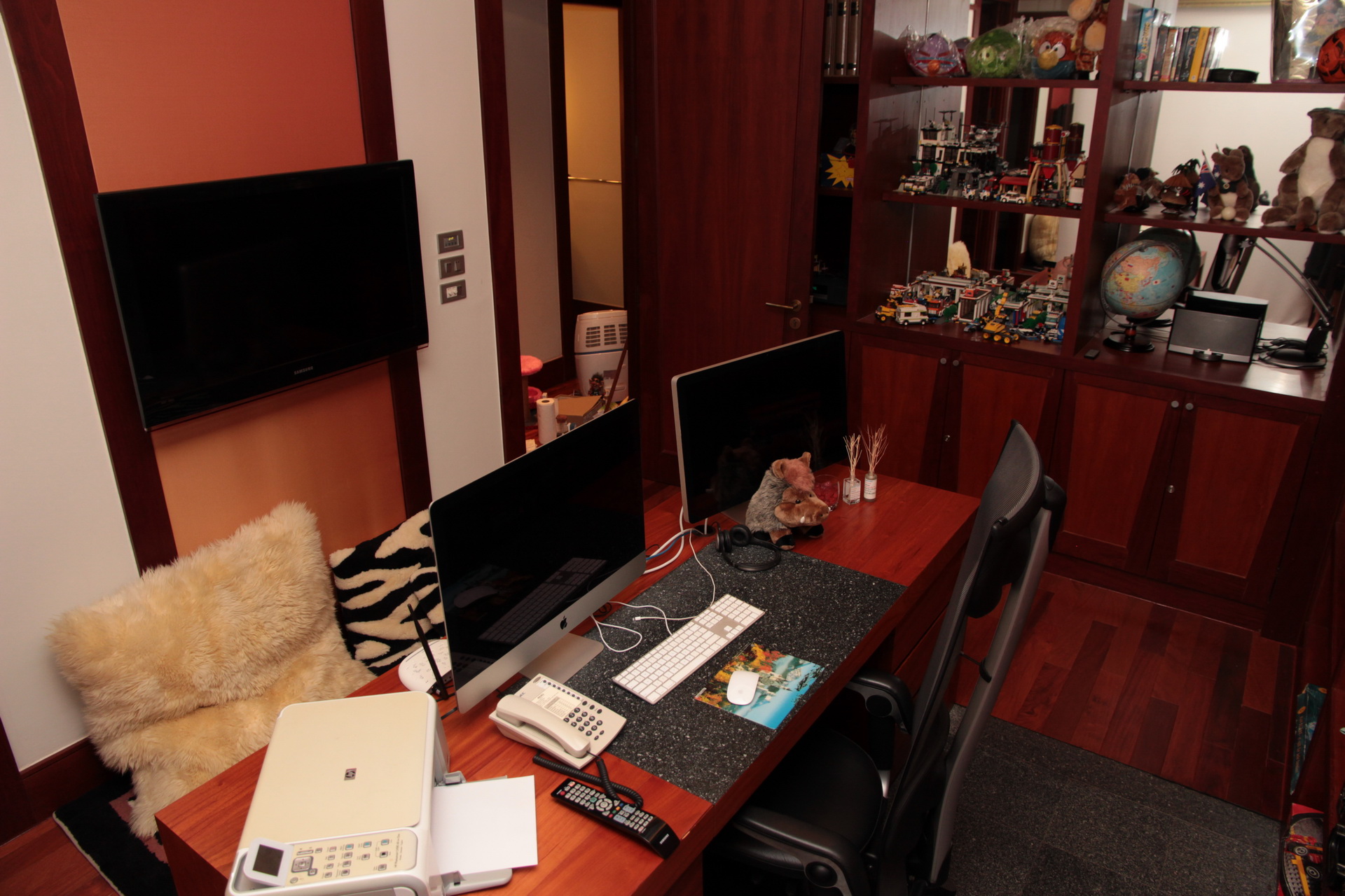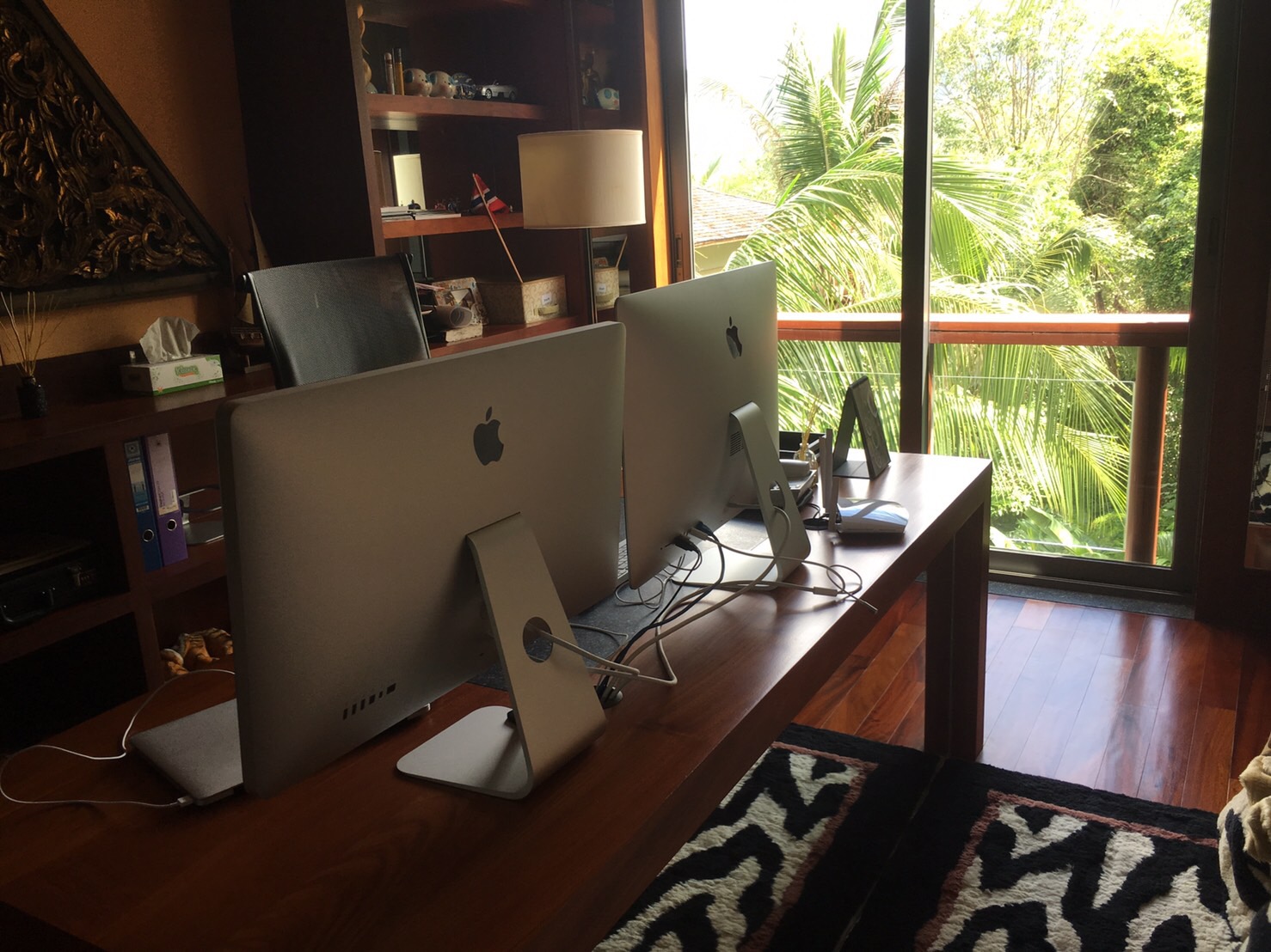 The 3rd bedroom is presently the office – study overlooking the landscaped gardens with mature trees and tropical plants. This guest bedroom can be easily refurnished with bed and bedroom furniture according to the new owners desire. It comes with en suite bathroom stylish and elegantly designed for the new owners guests to enjoy. Teak floors. shower, vanity unit, mirrors and toilet.